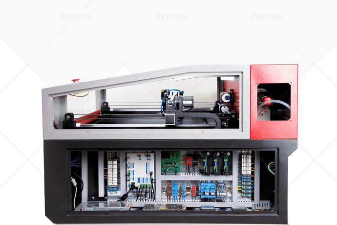 - Системы комфортной эксплуатации: Включение компрессора галочкой из программы, на каждый отдельный слой, Включение и выключение вытяжкного вентилятора при запуске задания, Задержка выключения вытяжного вентилятора по заданному времени, Управление подъемным столом из программного обеспечения, Смена высоты подъемного стола в одном задании может происходить многократно, Зональное разделение вытяжек для резки и гравировки, Быстрое переключение на поворотную ось одной кнопкой, Протягивание длинномерных или рулонных материалов, Управление через сетевой кабель Ethernet-RJ 45, Считывание данных с USB Накопителя, Регулируемые крепления излучателя, Красный лазерный целеуказатель